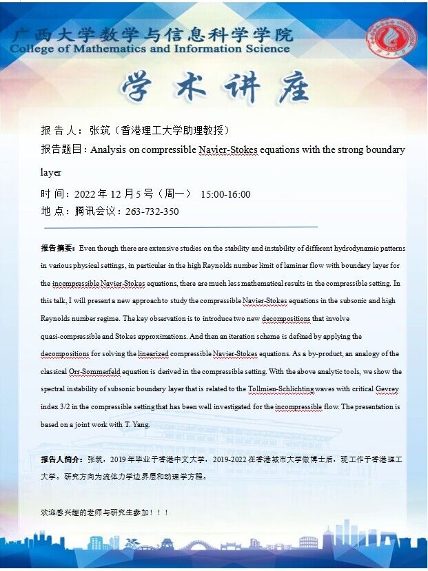 学术讲座:Analysis on compressible Navier-Stokes equations with the strong boundary layer