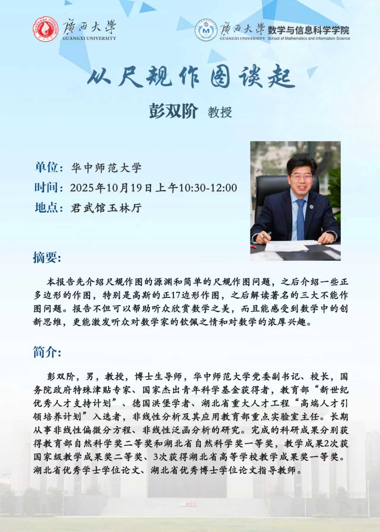 学术报告:从尺规作图谈起