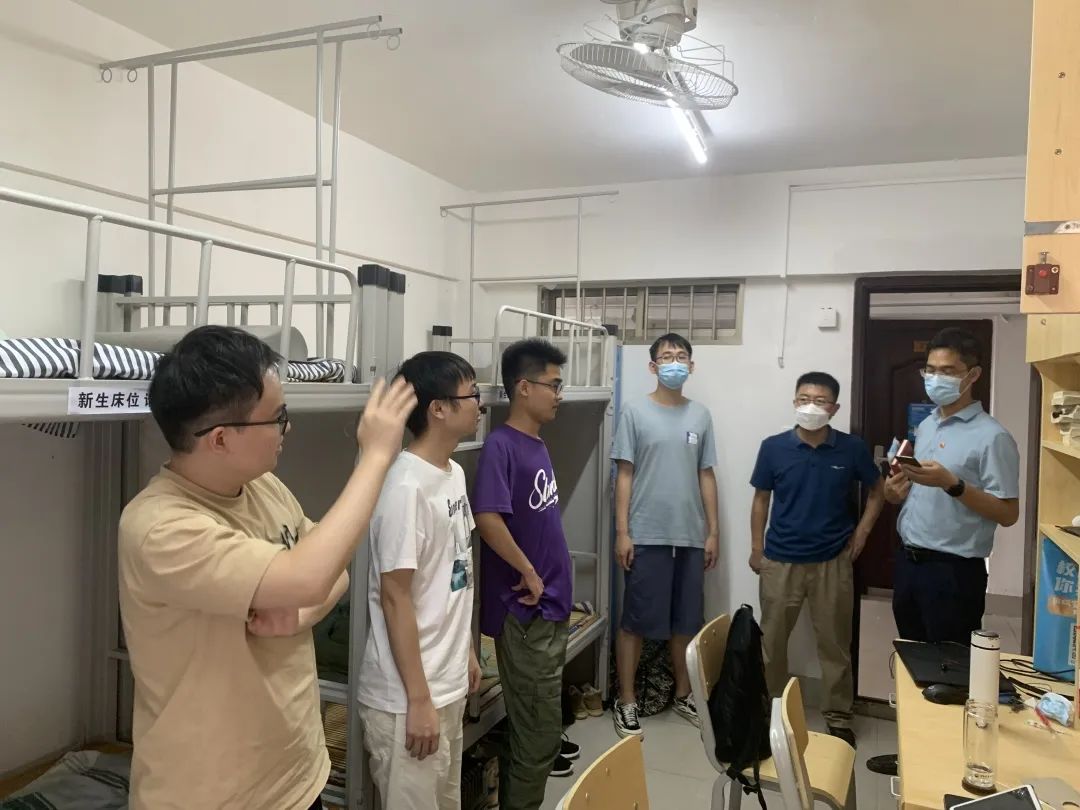 “来自哪里”、“是否能够适应天气”、“疫情期间,注意保护自己”......每到一个宿舍,院领导都亲切地对新生的到来表示热烈欢迎,亲切询问相关情况,解答新生在学习生活上的困惑,为刚踏入大学的新生们带来了家的温暖。