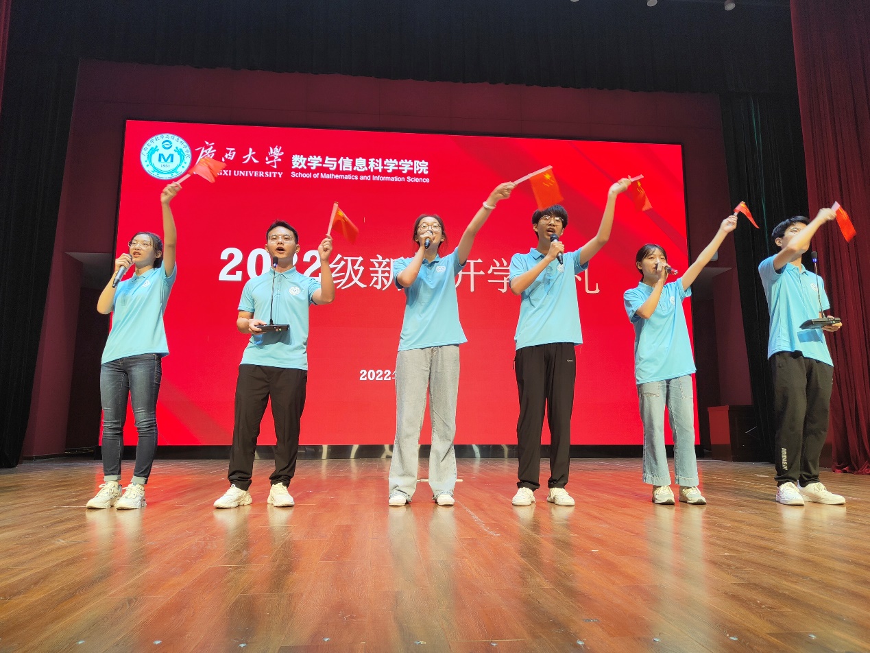 教师代表、信息与计算科学系主任金德泉副教授发言,希望新生们学好知识、学好技能、学会生活、学会做人,培养数学兴趣,笃定目标,充满信心,战胜困难,勇于承担起国家、家庭和社会的责任。老生代表、数信创培191班朱光洁发言,希望新生们树立学习报国远大志向,积极向党组织靠拢,把学习放在首位,在学习之余丰富自己的业余生活,加强体育和美育,全面发展。新生代表、2022级研究生王瑞斌发言,对开学以来学院的周到安排和老师们关心关怀表示感谢,表示将做一名兼具家国情怀、踏实求知和严谨求实的有心人、奋斗者和实干家。