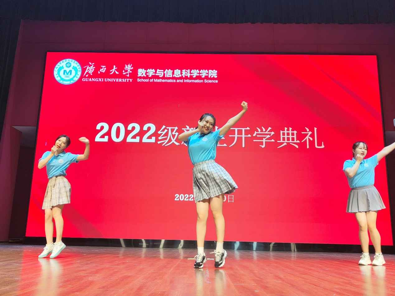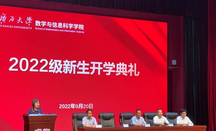 数学与信息科学学院2022级新生开学典礼暨开学第一课在学校大学生活动中心小剧场举行。院党委书记黄建荣,院长郭真华,院党委副书记郭海燕,副院长刘海东、黄敢基,以及院长助理、各系负责人、本科新生班主任、研究生导师代表、全体辅导员等出席仪式,郭海燕副书记主持仪式。