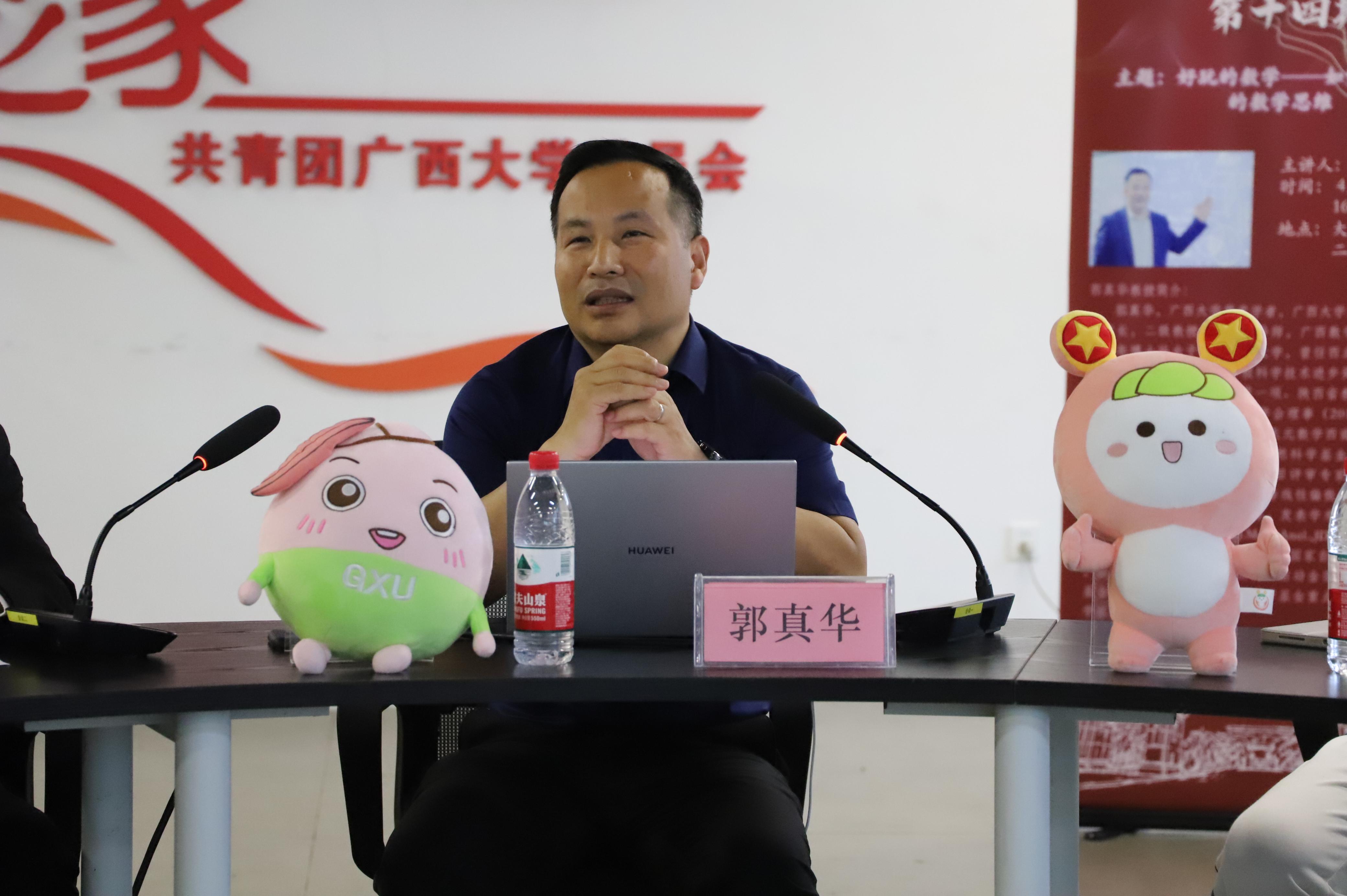 君武学者、数学与信息科学学院院长郭真华教授担任主讲,以“好玩的数学——如何养成自己的数学思维”为主题,为同学们讲述他在科研道路上潜心治学、教书育人、敬业奉献的故事,带领同学们感受数学的独特魅力,激励青年学子们培养科学理性的数学思维,在学习成长道路上求真务实、踏实奋进。