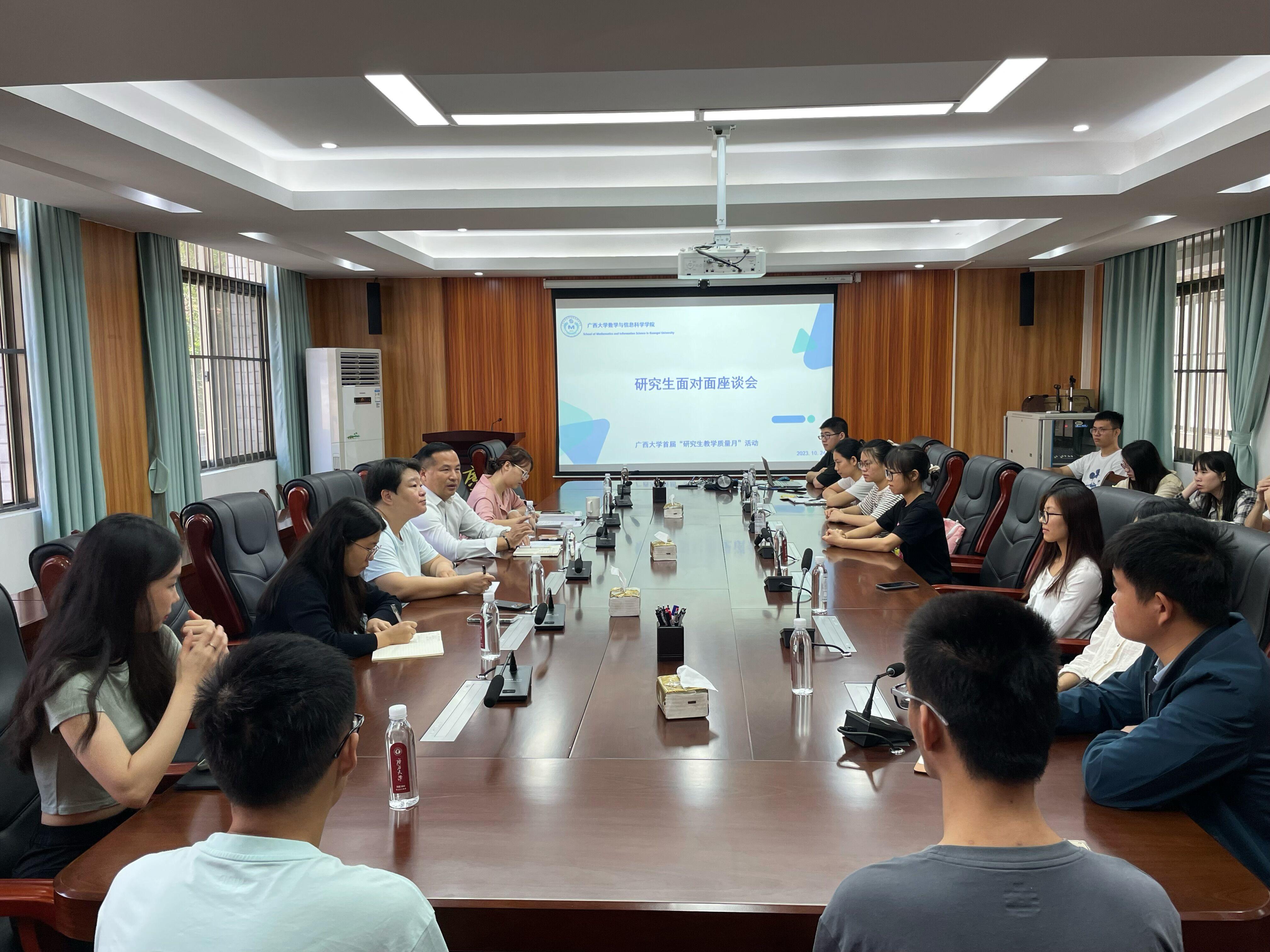 于10月24日上午召开“研究生面对面座谈会”,院长郭真华教授、学工组周蕾老师,研究生秘书李婷老师及20余位研究生代表参加。