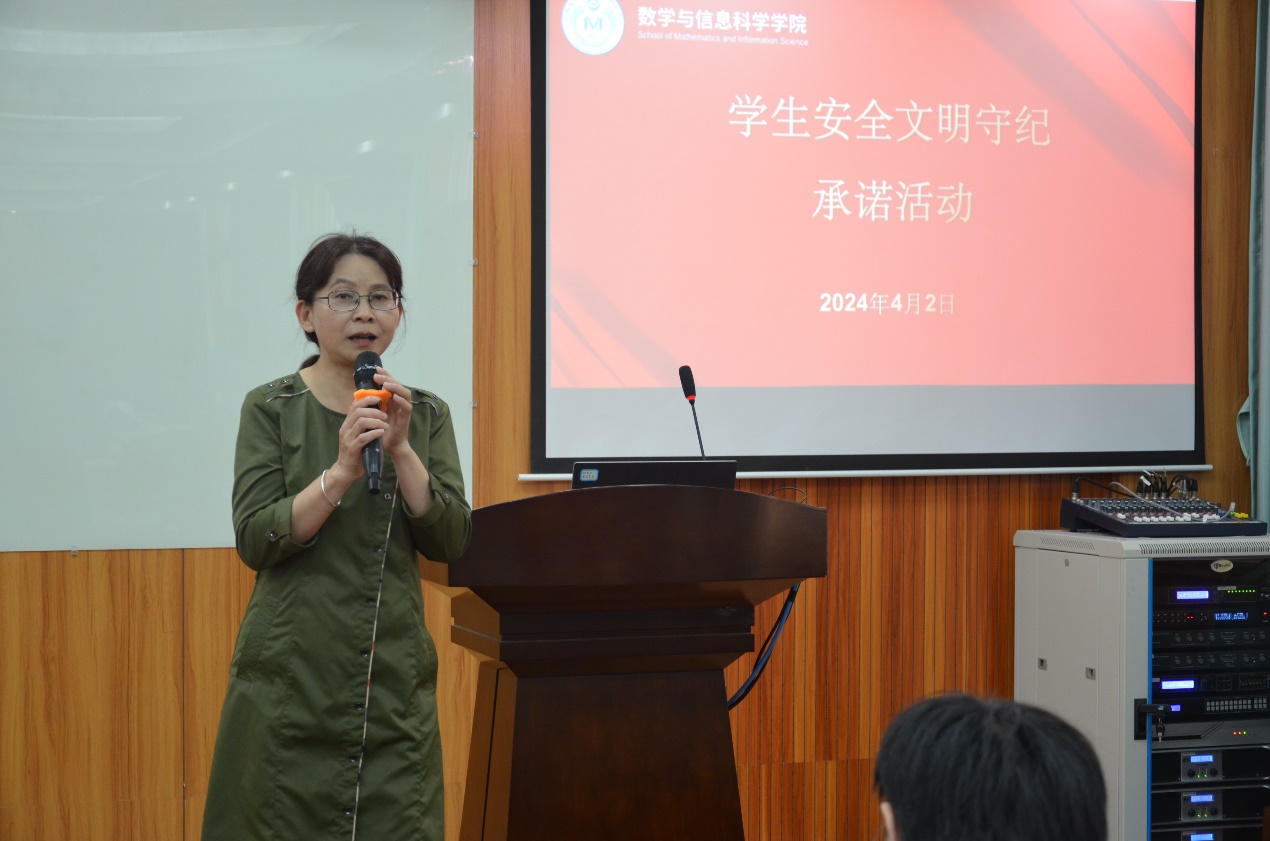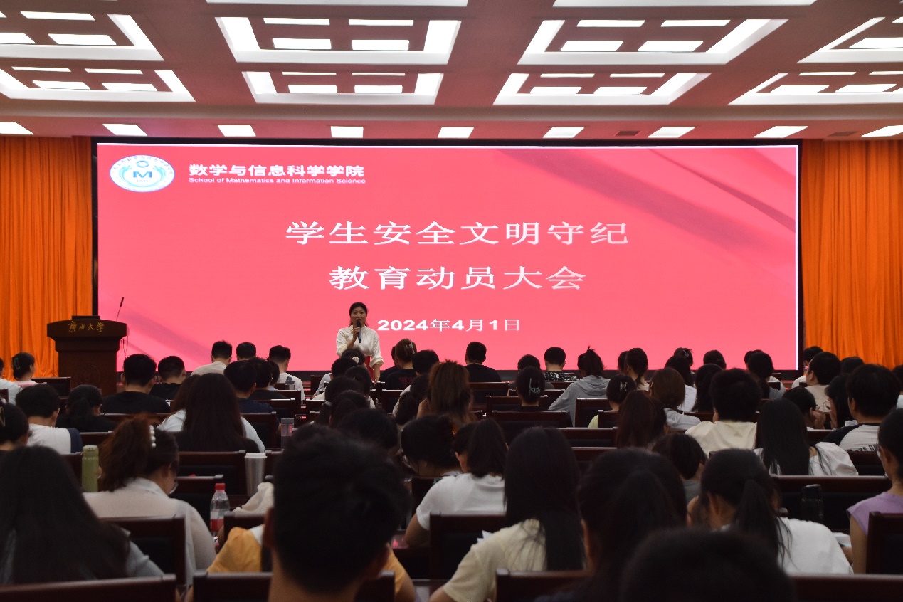 全体学生在会上共同学习《数学与信息科学学院学生安全文明守纪提示》小册子,其中安全提示涵盖人身安全、财产安全、网络安全、交通安全、消防安全、社交安全等内容,文明提示涵盖课堂文明、举止文明、宿舍文明、网络文明、就餐文明、诚信文明等内容。