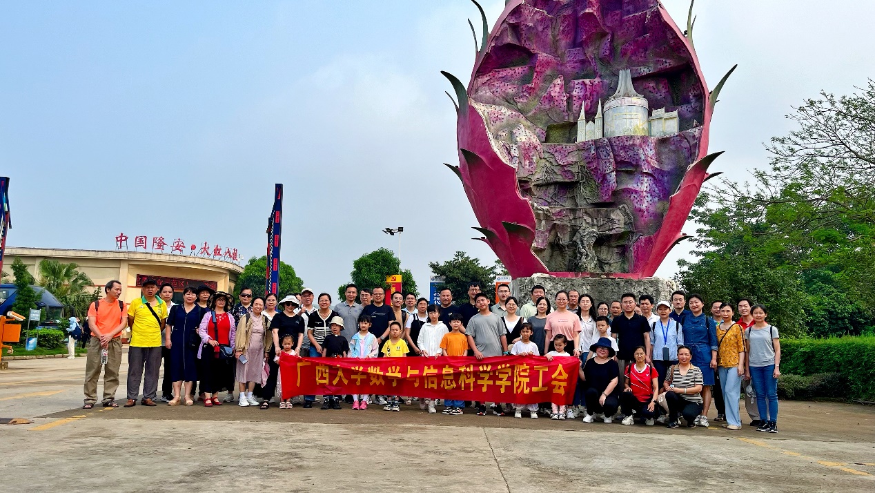 醉美人间四月天。4月27日,数学与信息科学学院分工会2024年春游活动在南宁市金穗生态园成功举行,80余名教职员工及家属参加。老师们在休闲之余,参观金穗生态产业园,近距离感受壮乡“那”文化,并进行游园体验,活动趣味盎然,老师们热情高涨。