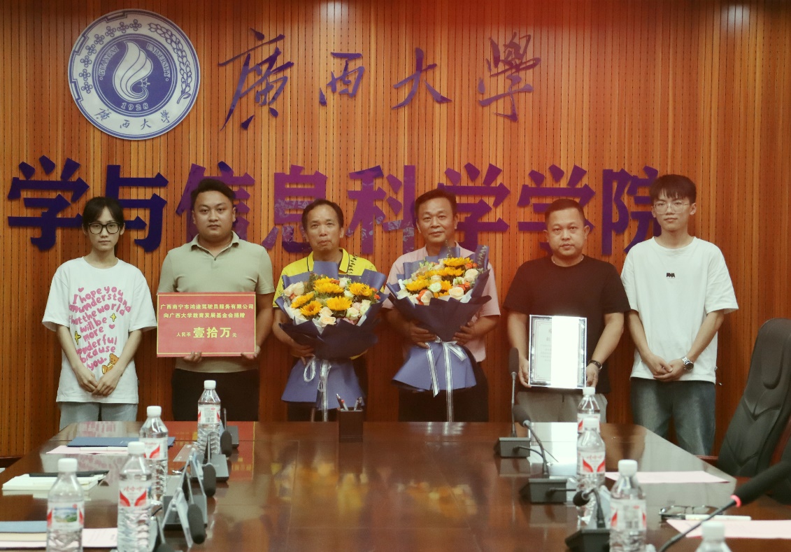 83级校友鸿途驾培集团董事长连建耀、校友办副主任陈懿、数信学院院长郭真华、鸿途驾培集团相关负责人、数信学院领导班子成员以及师生代表参加捐赠仪式。捐赠仪式由数信学院党委副书记唐旭彬主持。