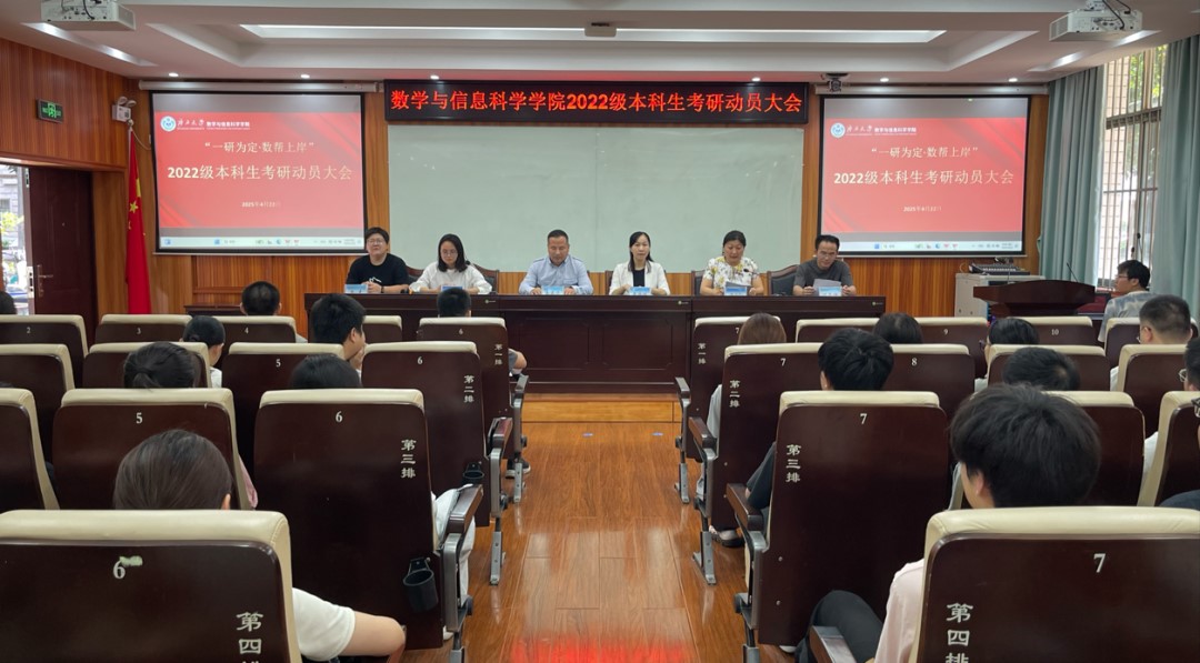 为深化人才培养质量,强化考研指导服务,数学与信息科学学院于4月22日下午在学院109报告厅召开2022级本科生考研动员大会。学院党委书记吴华丽、院长郭真华、博士生导师代表、各系正副主任、全体专兼职辅导员、2022级本科生班主任及全体本科生参加动员大会,大会由学院党委副书记唐旭彬主持。