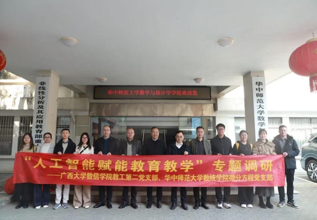 教工第二党支部赴华中师范大学开展高校“双带头人”教师党支部“强国行”专项行动系列活动,与华中师范大学数学与统计学学院微分方程党支部开展共建联建、座谈交流、“人工智能赋能教育教学”专题调研等活动。
