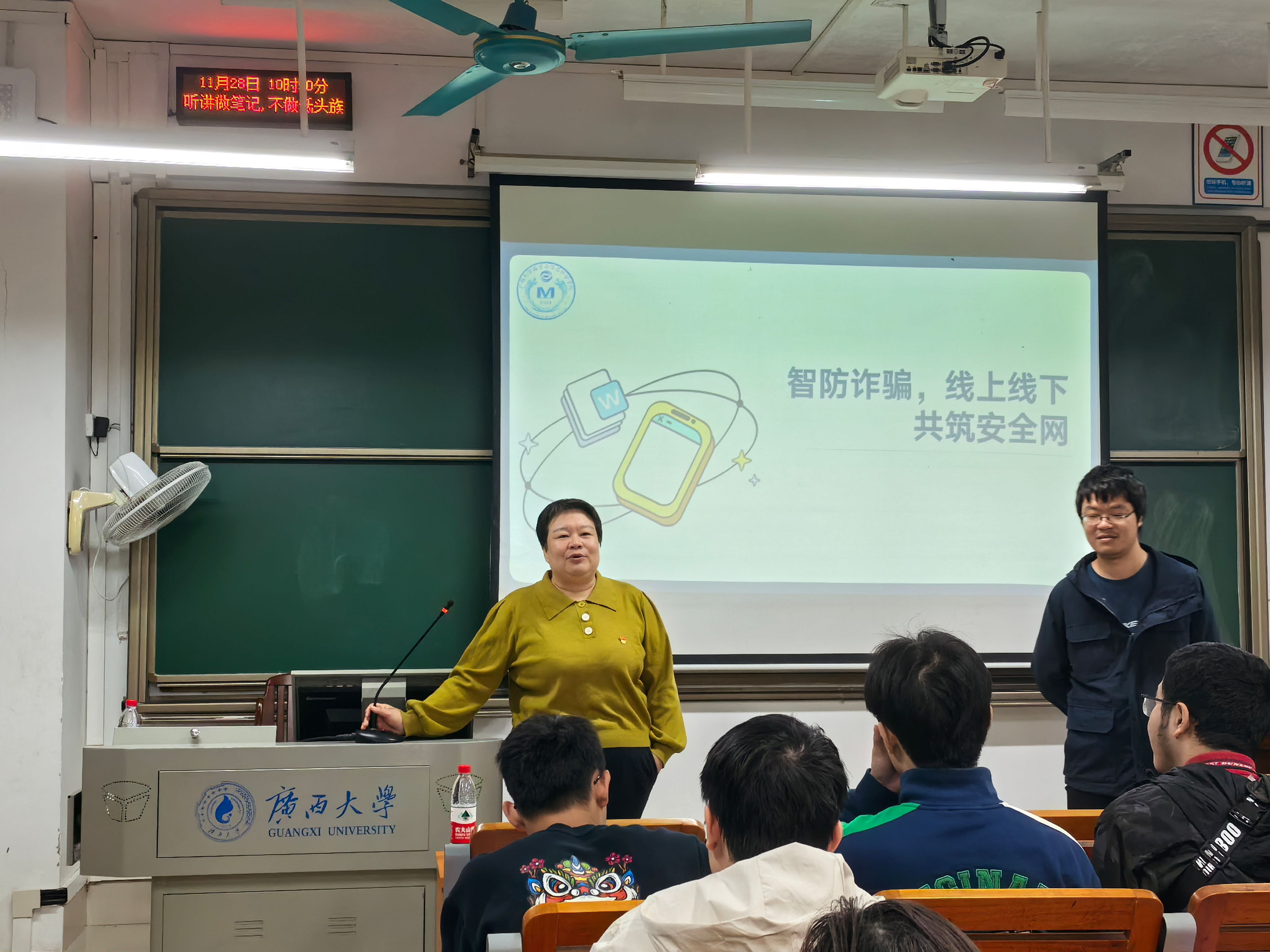 开展了以“智防诈骗,线上线下共筑安全网”为主题的教育活动。活动就常见诈骗类型,诈骗识别技巧,防诈骗实用策略等几个方面从线上线下两方面均展开讲解。此次主题教育活动进一步扩大了反诈宣传覆盖面,提高了学生反诈意识。