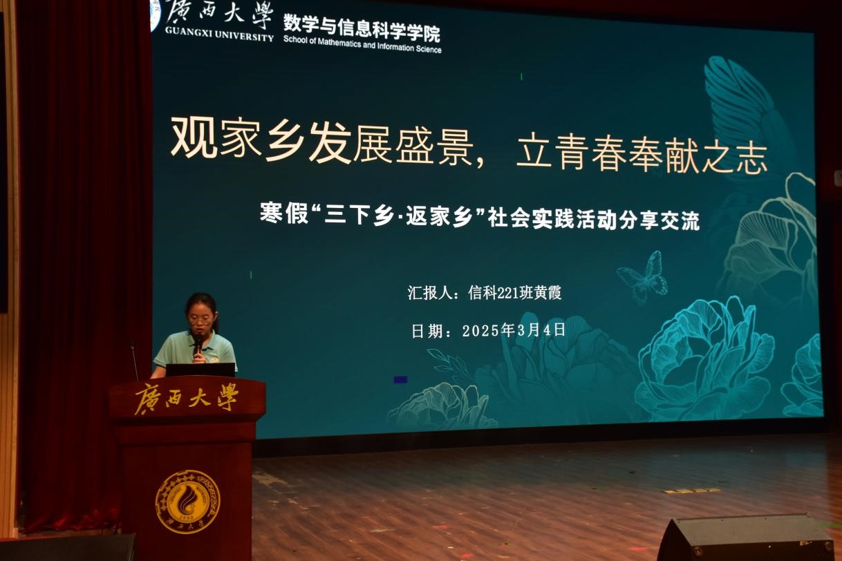 3月4日下午,数信学院在大学生活动中心一楼小剧场举办寒假“三下乡·返家乡”系列社会实践活动颁奖仪式暨分享交流会。学院党委副书记唐旭彬、校团委陈晓江、数信学院全体辅导员、获奖学生及23、24级本科生参加本次活动。
