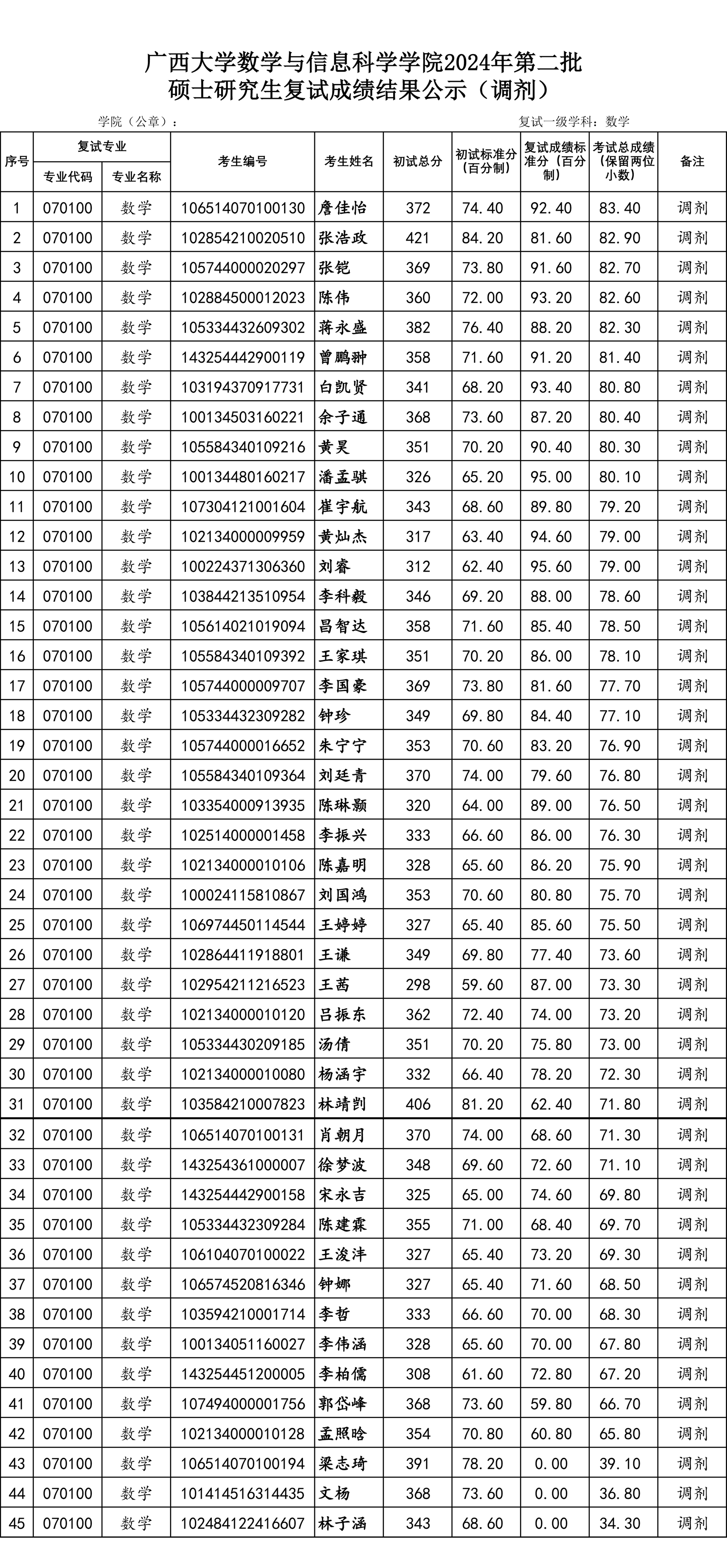 Avgo 数学与信息科学学院2024年第二批硕士研究生复试名单公示(调剂考生)