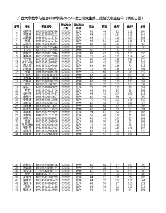 Avgo 数学与信息科学学院2025年第二批硕士研究生复试成绩结果公示(调剂)