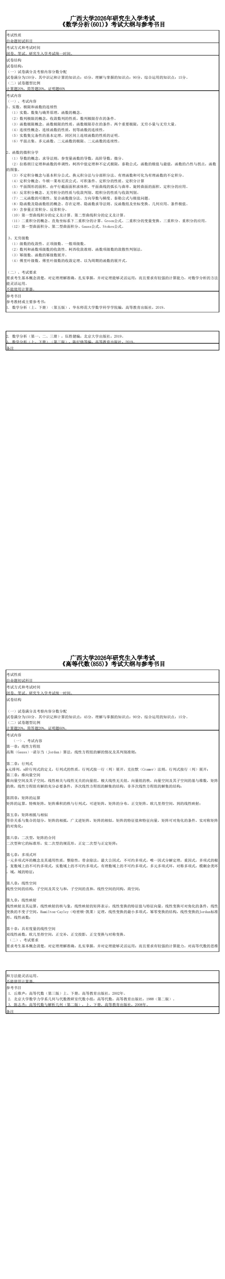 Avgo 2026年研究生入学考试《数学分析(601)》《高等代数(855)》考试大纲与参考书目