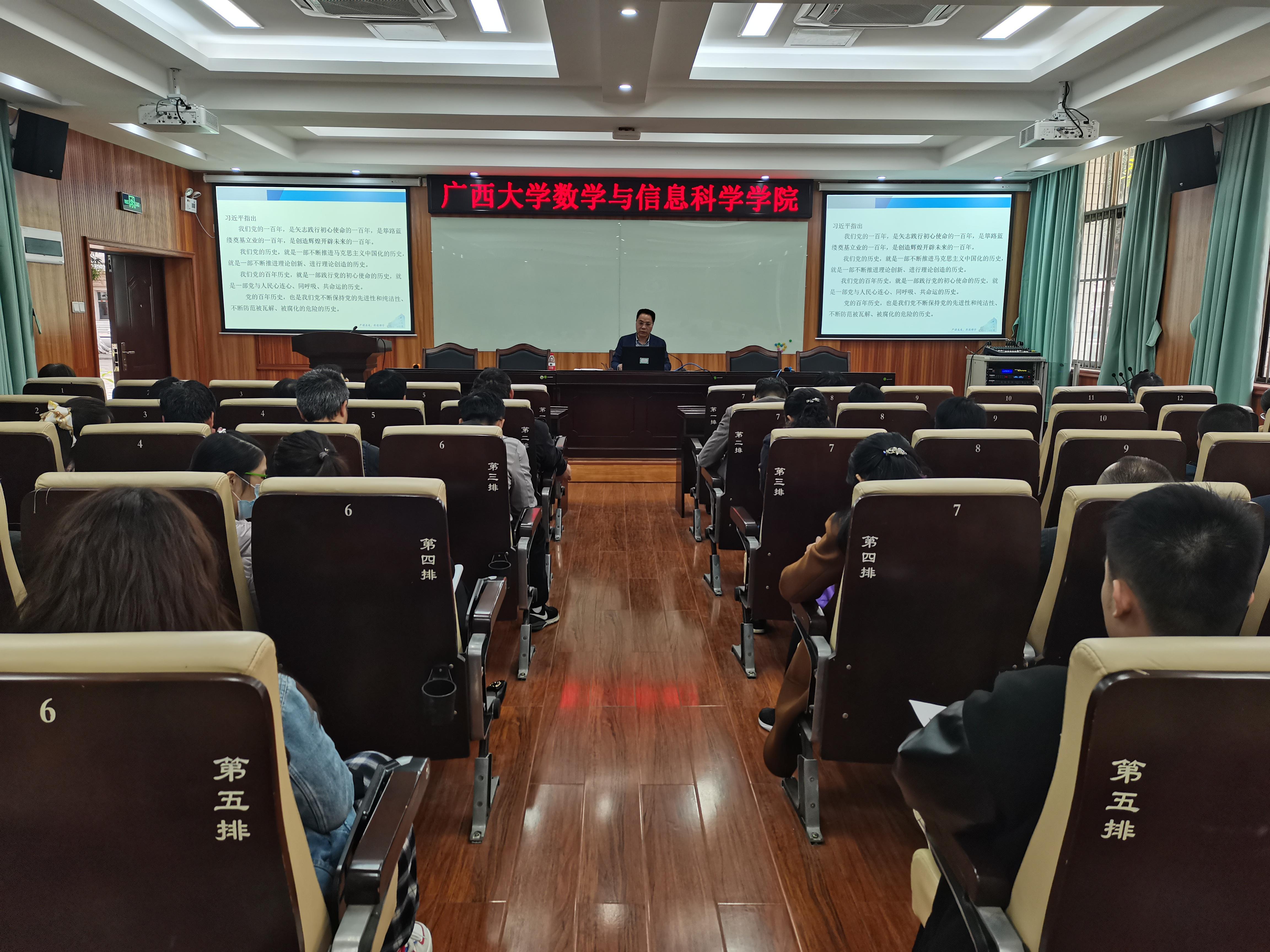 2021323日下午,数信学院党史学习教育动员大会在学院一楼报告厅召开。院党委书记黄建荣出席会议并作动员讲话,院党委委员及全体教职工党员和学生党支部委员参加了动员大会。